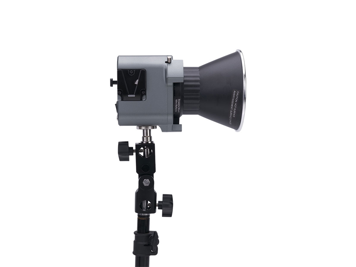 In addition to the included AC Power Supply, the fixture can bepowered using the included Dual Sony NP-F Battery Plate or a D-Tap Battery1, which can easily be attached to the V-Mount Quick Release, located on the side of the unit for easy operation. The COB 60x S is the perfect light for creating on the move and an also be used with its matching Handheld Bracket2 via the 1/4-20in Mounting Point for the ultimate mobile lighting kit.
