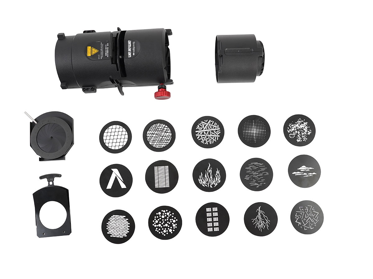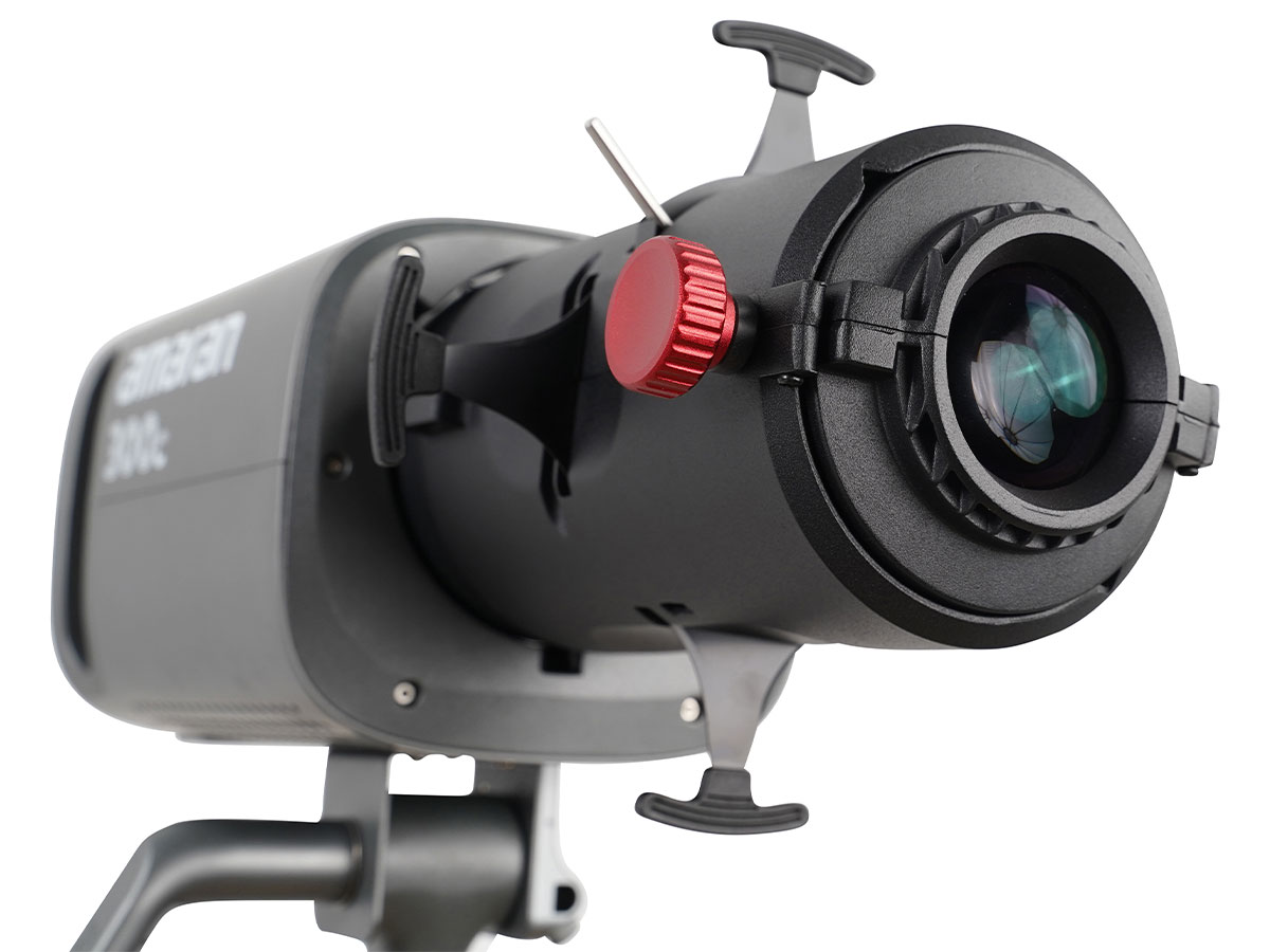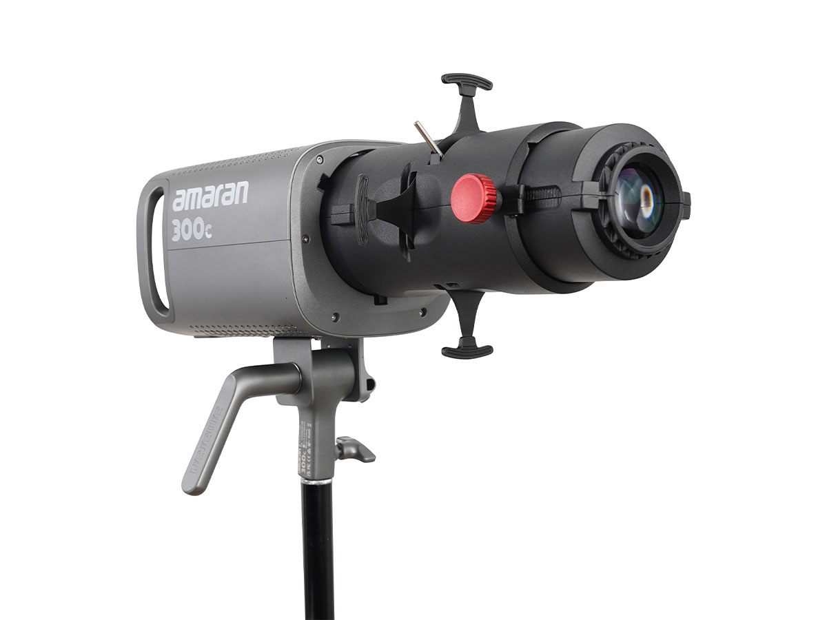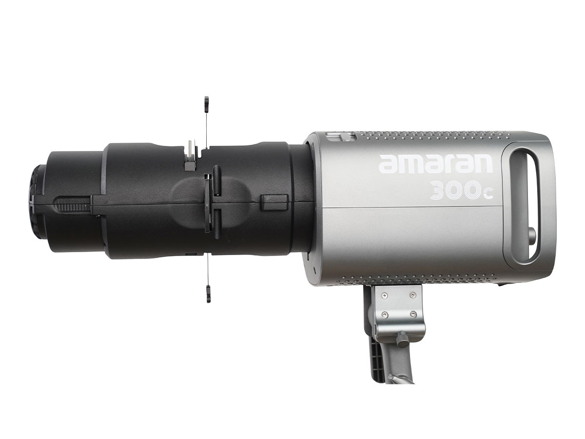The amaran Spotlight SE is amaran’s first projection lens modifier designed to elevate the performance of your amaran 150c or 300c. This compact optical modifier for Bowens Mount point-source fixtures (up to 300W) transforms your light into a powerful spotlight that can extend the reach of your illumination and produce an even, shapeable output.