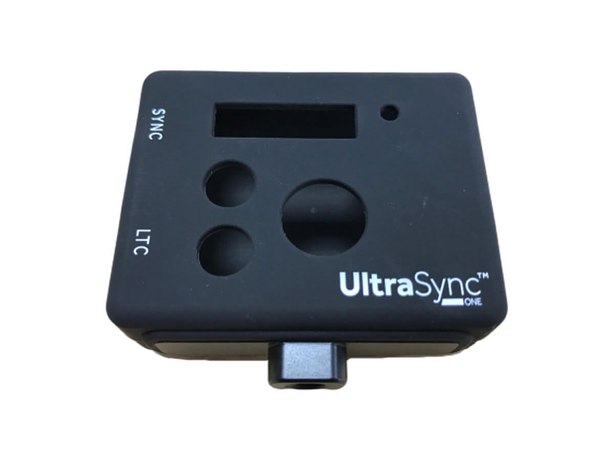 Black silicone case featuring 1/4″ mounting threads, designed to fit the UltraSync ONE.