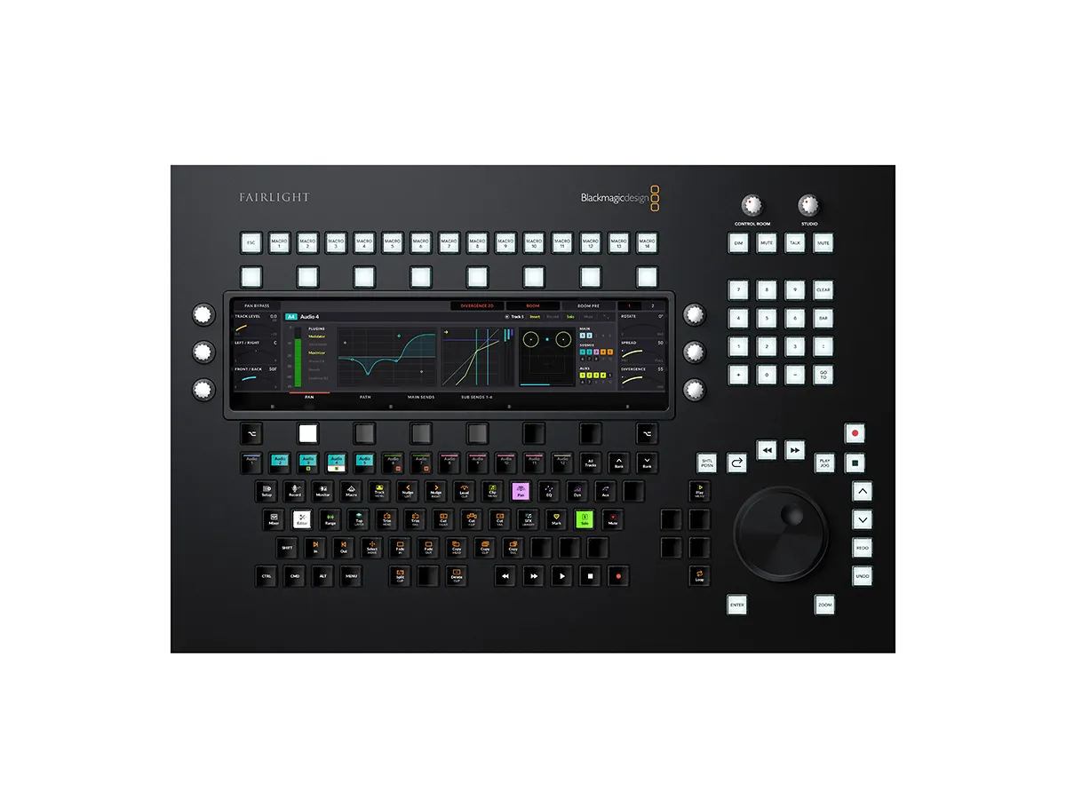 As part of a full console, Fairlight Console Audio Editor provides incredible speed and control for professional sound editors working on tight deadlines. You get quick access controls for high speed precision audio editing that let you work much faster than you could with a traditional mouse. The elegant design features an interactive LCD screen, touch sensitive control knobs, macro buttons, number pad, high quality search dial with electronic clutch and full keyboard with multi function picture keys that change based on your current task. Simply connect Fairlight Console Audio Editor by ethernet directly to your console. The menus and controls are designed with more than 20 years of professional audio engineer guidance and use, so it’s optimized for any project you can throw at it.