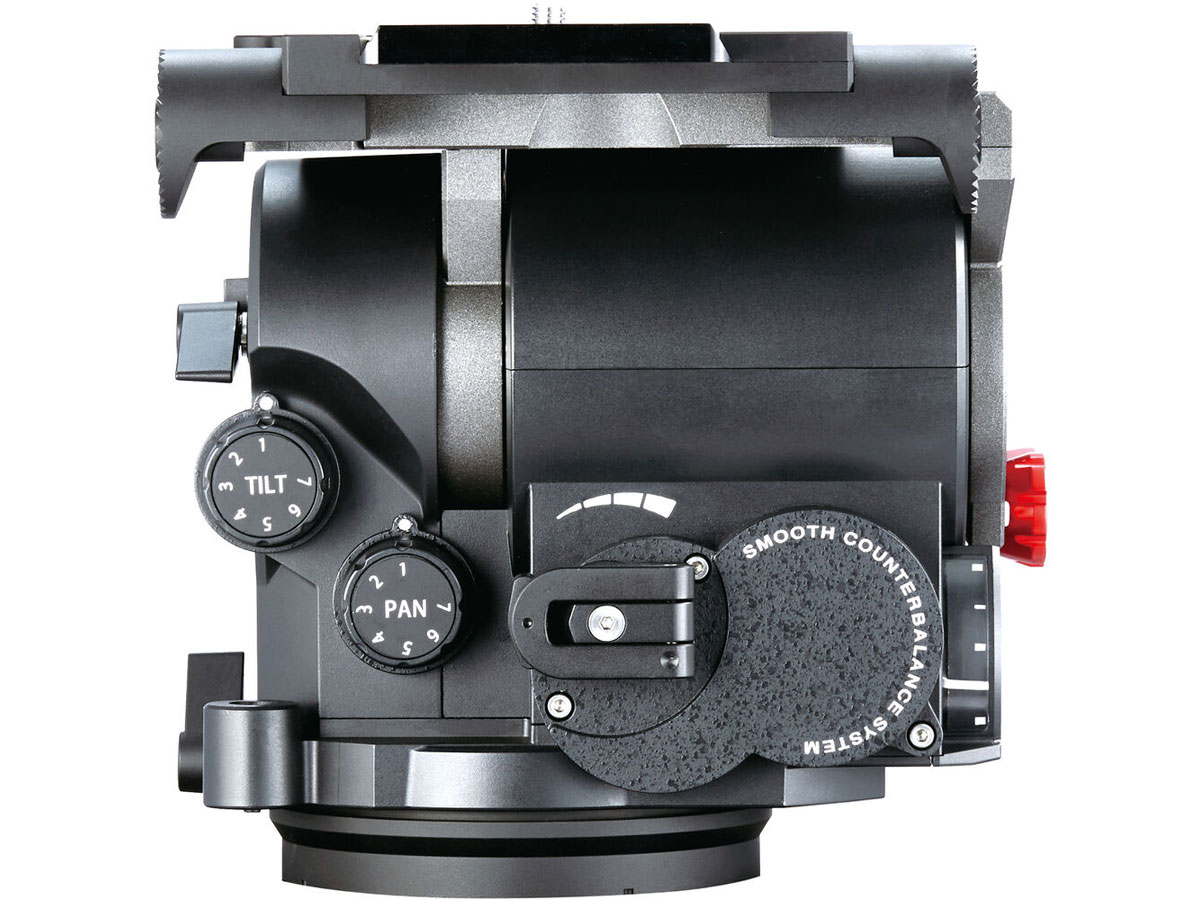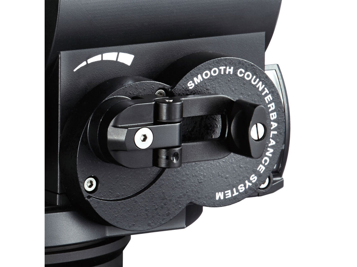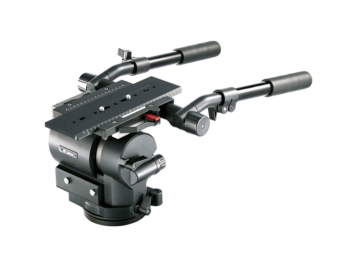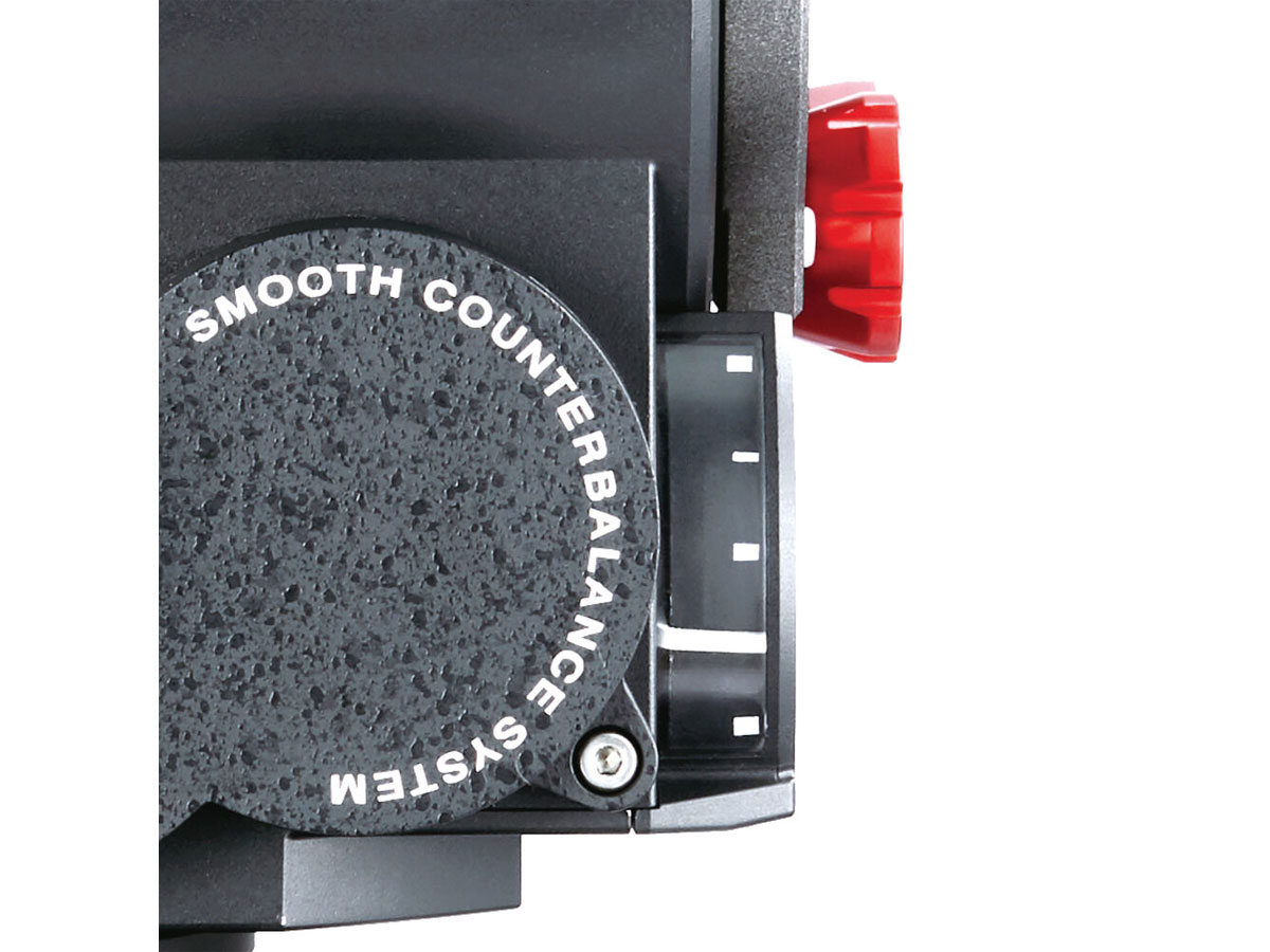 Heavy duty QH3 Fluid Head with 2x Extendable Pan Handles PH-15, centre tilt lock, snap on/off sliding plate, smooth counterbalance system and 150mm ball base adapter. For the camera system's safety, the head can be physically locked into a centre tilt position. Even at a distance, the arrow shaped knob and Lock/Unlock symbols are visible. The BL-150 ball base adapter is included inside the kit, which converts the flat base head into a 150mm ball head. The Smooth Counterbalance System is a unique Libec technology that allows the counterbalance knob to be adjusted with constant motion to smoothly reach the minimum and maximum power range. The foldaway knob is designed for easy speedy adjustments. The QH3 Fluid Head supports up to 69kg.