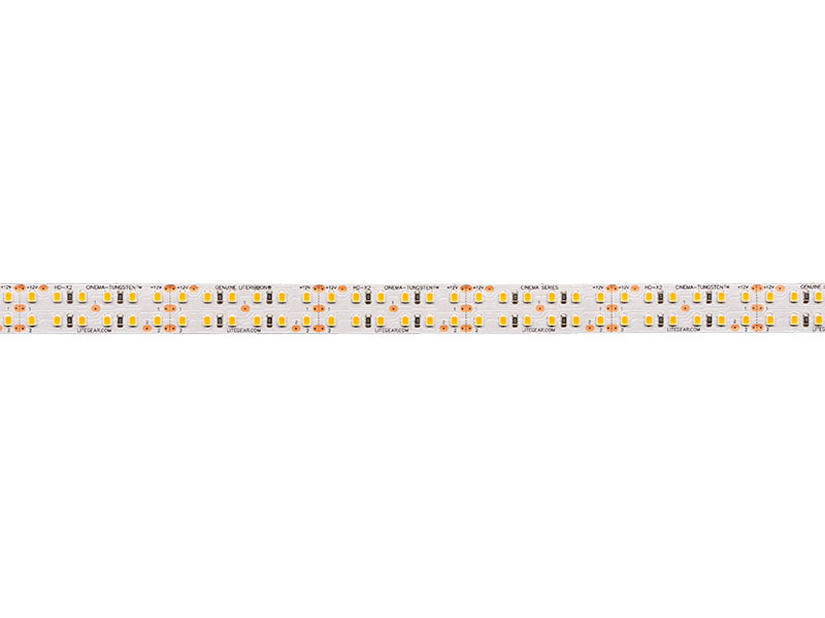 LiteRibbon Cinema Tungsten X2 12V offers cinema-quality emitters with CRI and full-spectrum output. This LiteRibbon variation features 2 rows of cinema-quality emitters and runs on a 12-volt current.