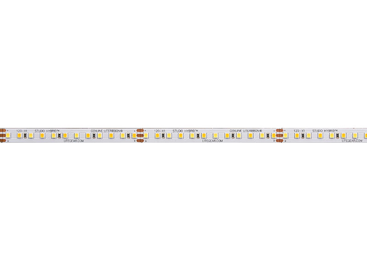 LiteRibbon Studio, Hybrid, X1, 12V, 20 m is an affordable and color-correct option designed for high volume installations. This LiteRibbon variation is 1 row of studio-quality emitters and runs on a 24-volt current.