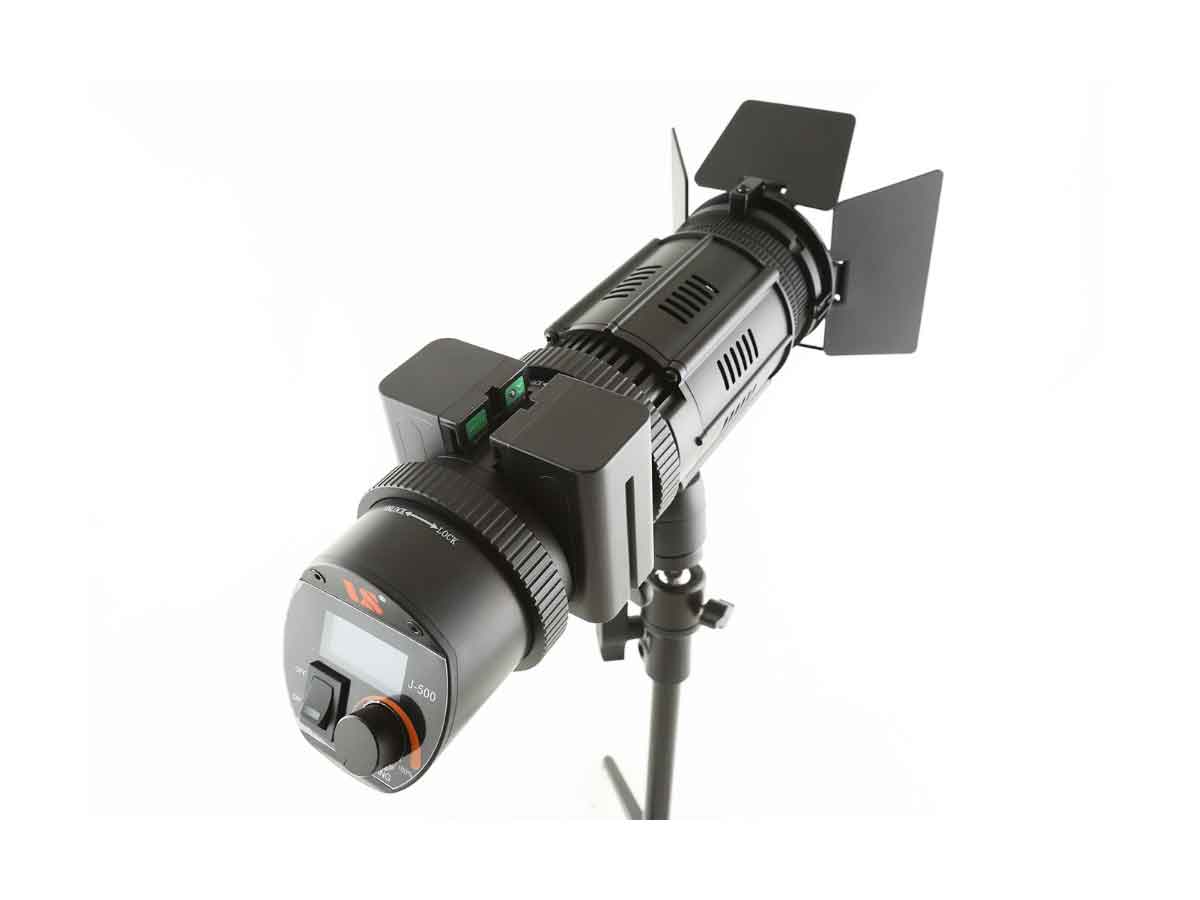 Because of the Fresnel Lens on the front of the Focus 500, you can spot and flood your light to easily adapt to any situation. The Fresnel Lens also ensures that you have one single hard source of light, which means just one strong shadow. Perfect for dramatic lighting on a budget.