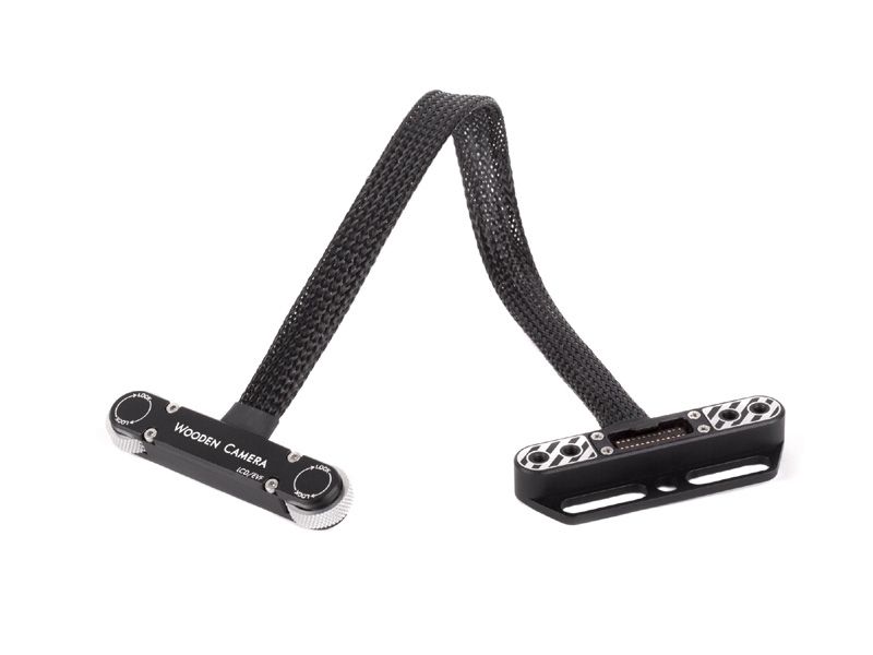 RED Male Pogo to Female Pogo LCD/EVF Cable (12") is a cable that allows the RED displays to be moved off the top of the RED Weapon/Scarlet-W/Raven and into a position more easily viewed. The male pogo connector attaches to the camera body without tools and the female pogo connector has a slotted design that can be bolted to any two 1/4-20 screws holes up to 54mm apart, center to center. 1/4-20 threaded holes are also found on the bottom of the female pogo connector for attaching to WC Magic Arms. The braided, flexible cable makes positioning easy and is great for gimbal use.